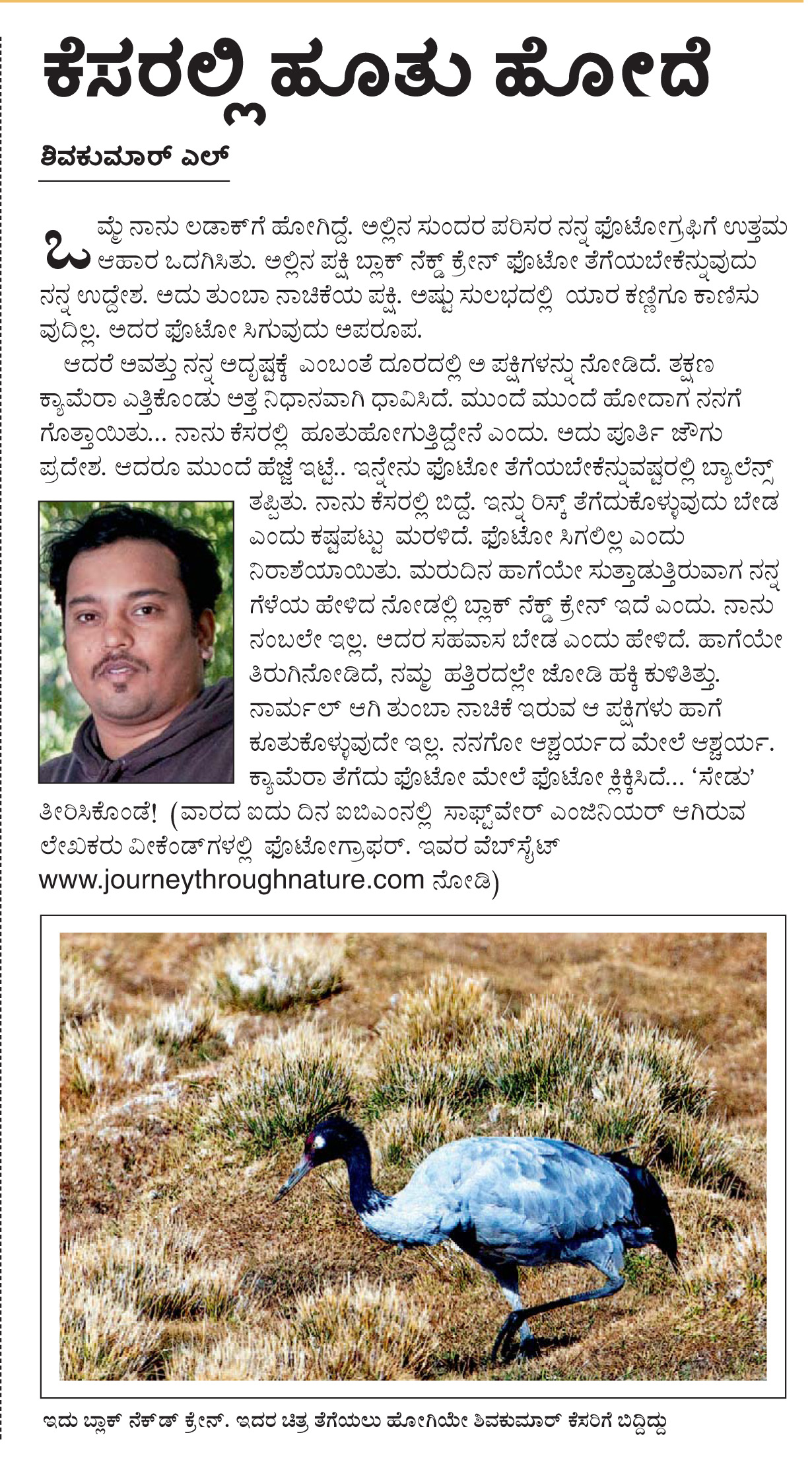 Landscape Wizards recently got featured on Vijaya Next, a Kannada weekly magazine msi afterburner. In some of the previous editions, Ashwini Kumar Bhat, fellow team member of LW who is known for his unique compositions had been featured with one of his best experiences in the wilderness, Sriharsha Ganjam who is passionate about star gazing had been featured, Shivakumar L Narayan was featured with his Black necked crane experience three friends. In the latest edition, Pramod Viswanath has been featured with his Ladakh experience.
